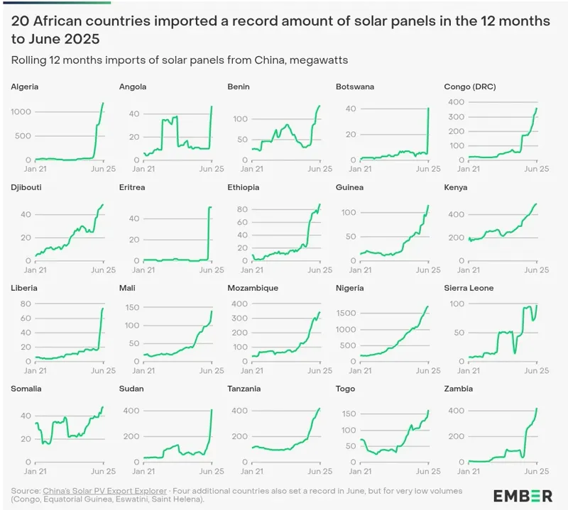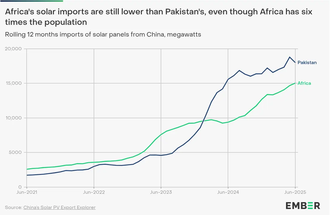 Africa’s solar imports—charts from Ember.